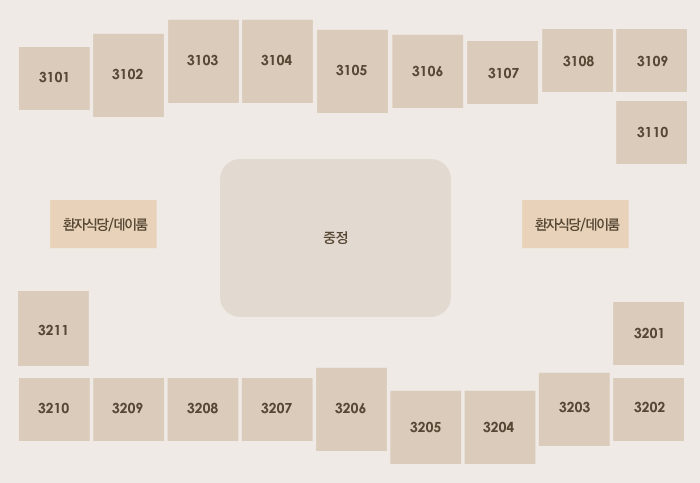 31병동(3101-3110), 32병동(3201-3211), 데이룸, 환자식당