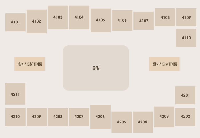 41병동(4101-4110), 42병동(4201-4211), 데이룸, 환자식당